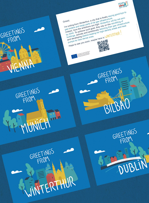 👉 On à envoyé des 𝐜𝐚𝐫𝐭𝐞𝐬 𝐩𝐨𝐬𝐭𝐚𝐥𝐞𝐬 aux acteurs clefs des 6 villes faisant partie du projet « Decarb city pipes 2050 ». Bilbao, Dublin, Munich, Rotterdam, Munich et Winterthur