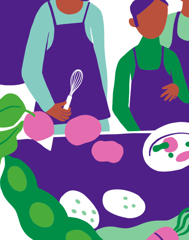 ✸ L͟a͟ ͟r͟é͟a͟l͟ : 4 illustrations autour du lien social et de la santé : Communication / Aide à la personne / Alimentation / Ateliers partagés