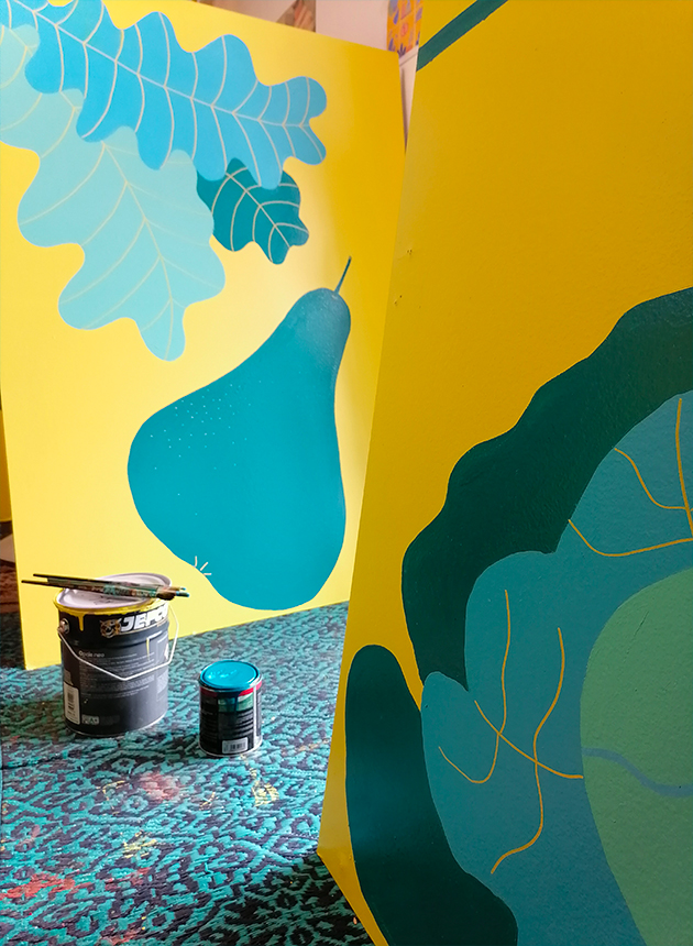 J’ai fais équipe avec Loriane Blondiaux, peintre en décor, pour réaliser mon illustration en grand format, dans la partie fruits et légumes frais.