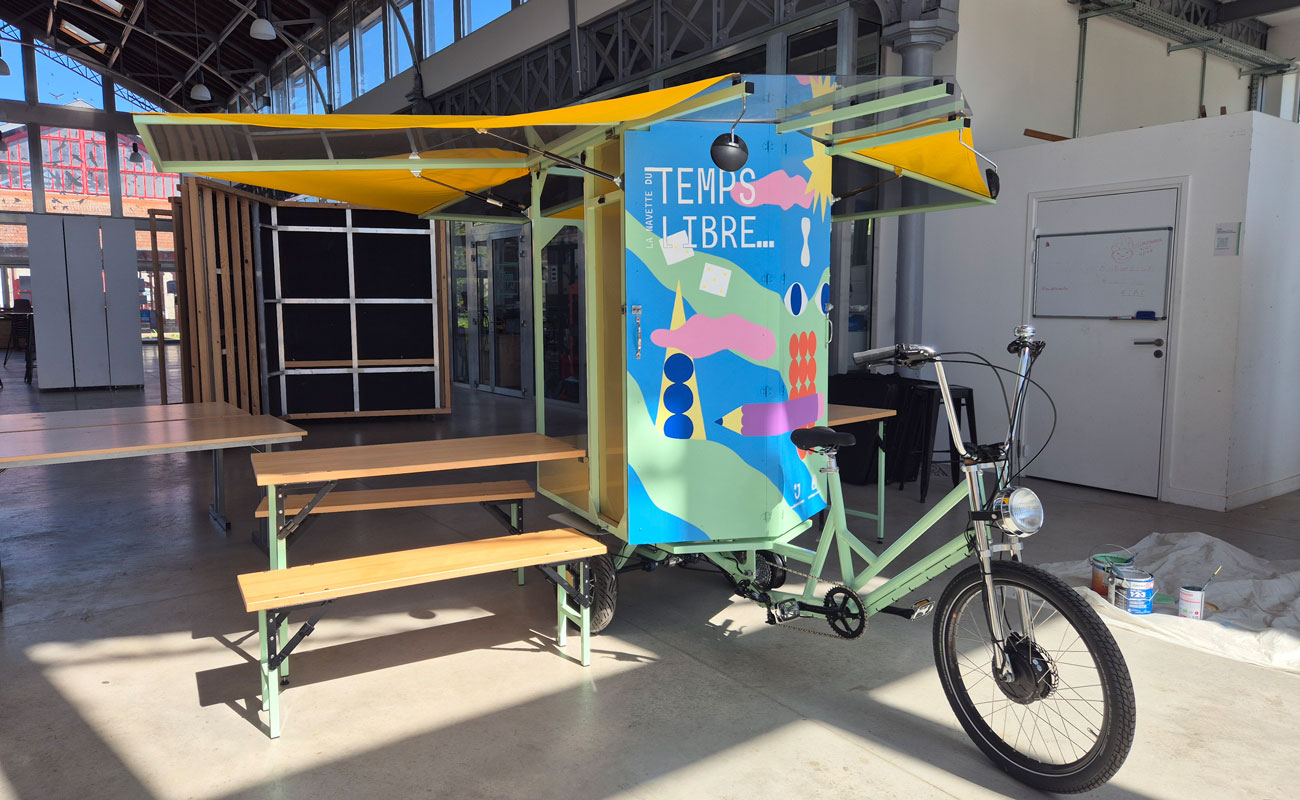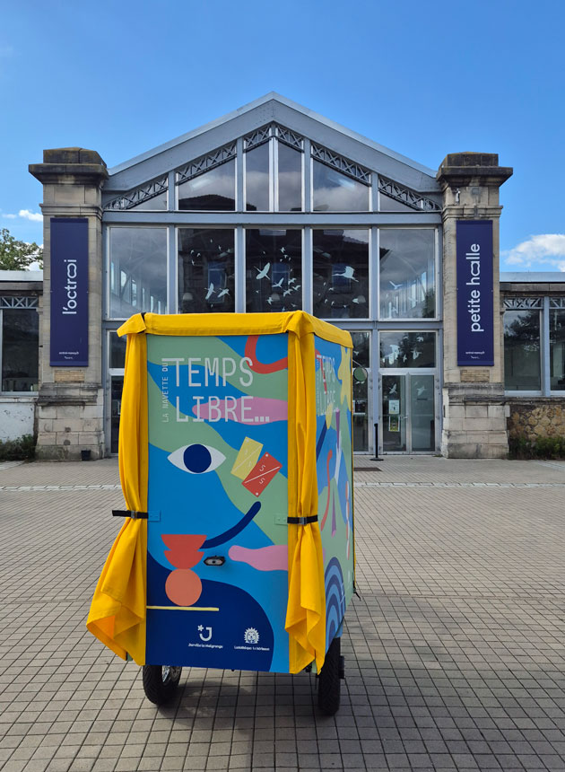 Ce vélo triporteur à été conçu sur mesure par la société Zambule et Cie. Il est en circulation dans la ville depuis le printemps 2025. C’est une ludothèque mobile, qui propose des jeux et activités créatives aux jeunes des quartiers de la ville de Jarville-La-Malgrange.
